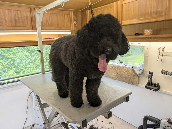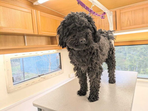 folgte eine Zwischenpflege mit Baden, Bürsten, Föhnen und kleinen Schnitten – z. B. um die Augen freizuhalten und empfindliche Bereiche wie den Intimbereich zu säubern.