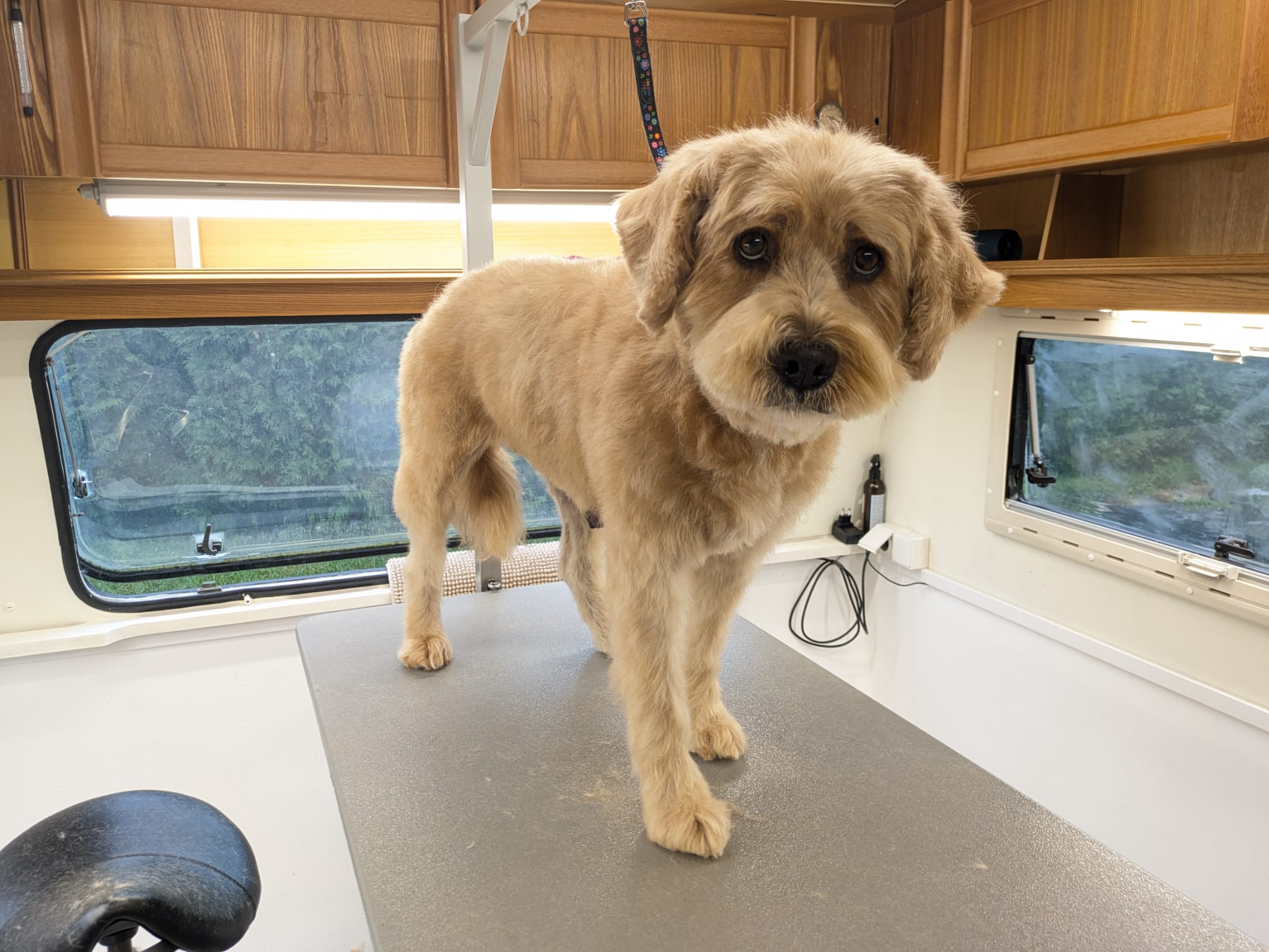 Batschi erhielt in Ronnys Pflegehütte eine komplette Pflege inklusive Schur. Nach dem Baden, Föhnen und gründlichen Bürsten wurde das Fell gleichmäßig geschoren – für ein gepflegtes, sauberes Erscheinungsbild und mehr Wohlbefinden im Alltag.