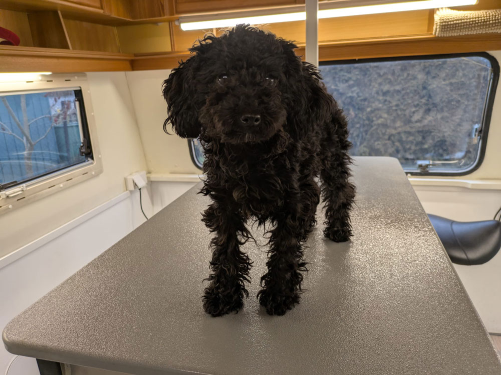 Zwergpudel Nala, 7 Monate, erhielt in Ronny's Pflegehütte eine welpengerechte Komplettpflege: