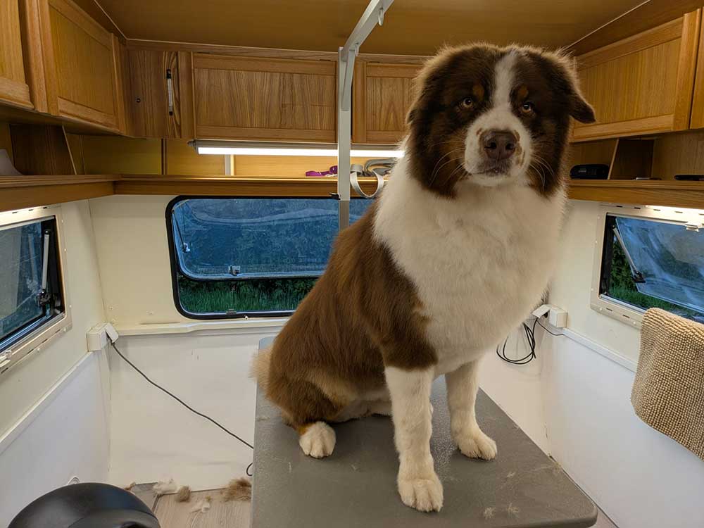Australian Shepherd Sammy – Frisch gepflegt mit kurzer Fasson