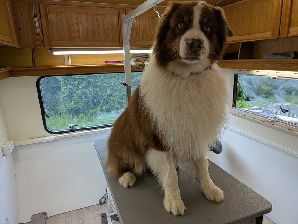 Sammy, ein lebhafter Australian Shepherd, kam mit viel alter Unterwolle zu mir in den Hundesalon. Durch die komplette Pflege wurde sein Fell gründlich gebürstet, lose Haare sanft ausgeföhnt (geblowert) und so die Haut wieder belüftet.