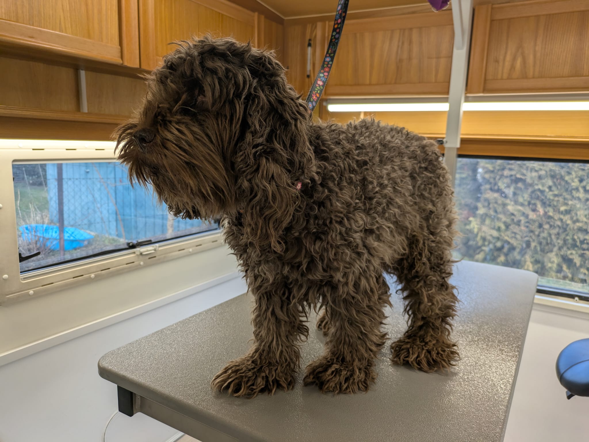 Cockapoo Archie erhielt in Ronny's Pflegehütte eine komplette Pflege. Da sein Fell teilweise stark verfilzt war, wurde es entsprechend kurz geschoren und geschnitten – für ein gepflegtes und angenehmes Fellgefühl.