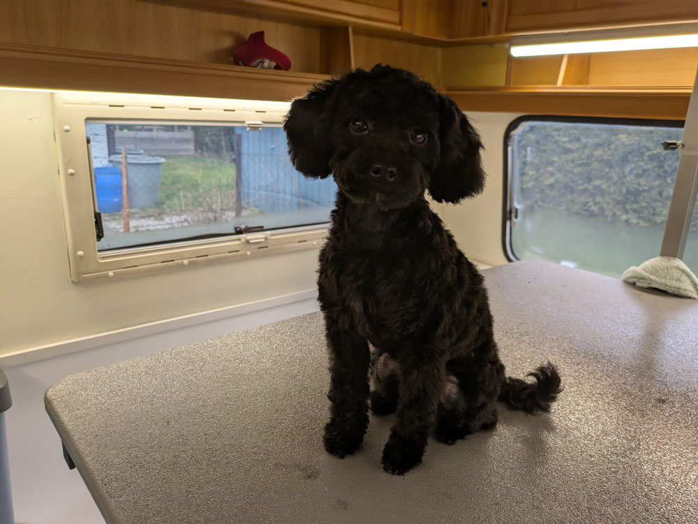 Zwergpudel Nala, 7 Monate, erhielt in Ronny's Pflegehütte eine welpengerechte Komplettpflege: